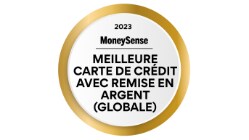 Basé sur l'annulation des frais annuels de 120 $ pour la carte principale et de 50 $ pour une carte supplémentaire la première année et l'obtention d'une remise en espèces en prime potentielle d’au moins 180 $ durant la période de l'offre, en supposant des achats totalisant au moins 2 000 $ auxquels s’applique le taux de remise le plus faible dans le cadre du programme, soit 1 % (c.-à -d. le taux de remise en prime de 9 % x 2 000 $). La valeur réelle variera selon le nombre de cartes supplémentaires émises pour le compte et le montant des achats effectués dans chaque catégorie au cours des trois premiers mois. Voir les conditions ci-dessus pour tous les détails.