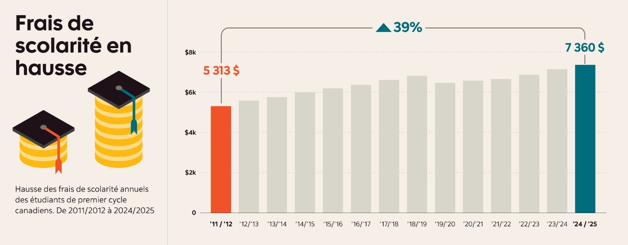 En 2024, le coût moyen des droits de scolarité pour un programme de premier cycle au Canada était de 7 360 $1.