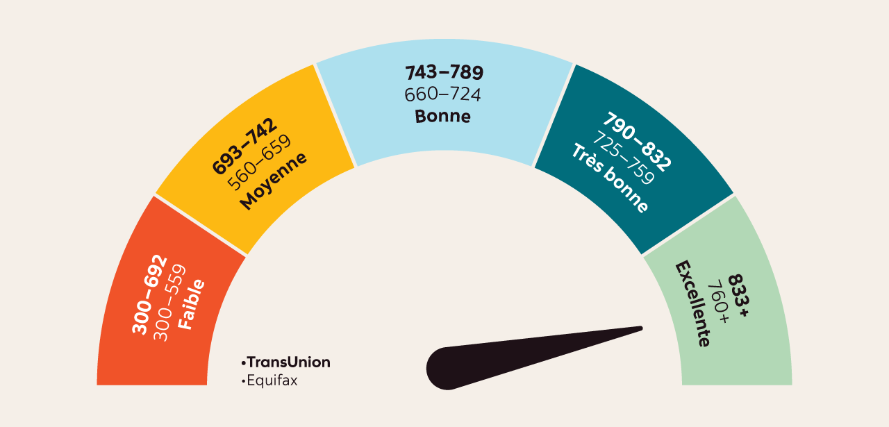 Remarque : Les plages de pointage de crédit de TransUnion peuvent être légèrement différentes. Poursuivez votre lecture pour en savoir plus sur la façon dont les plages de pointage de crédit sont calculées au Canada.