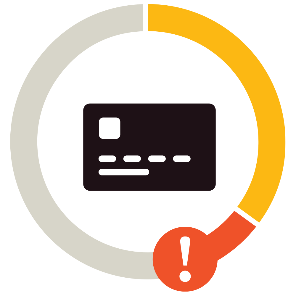 Maintenir votre utilisation en dessous de 30 %9 de votre limite de crédit totale indique que vous êtes responsable financièrement. Par exemple, si vous avez une limite de 10 000 $ pour toutes vos cartes de crédit et que vous avez un solde de 3 000 $, votre taux d’utilisation est de 30 %. Il est recommandé de rester en deçà de celui-ci.