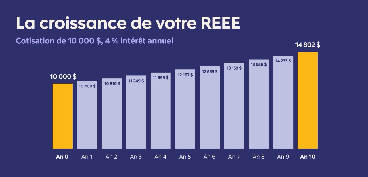 Si vous décidez qu’un REEE convient à votre enfant, le meilleur moment pour commencer à épargner dans le REEE est le plus tôt possible. Plus l’argent peut fructifier dans le compte, plus l’épargne sera élevée lorsque votre enfant s’apprêtera à poursuivre ses études postsecondaires. Bien entendu, cela dépend également de la manière dont votre argent est placé.