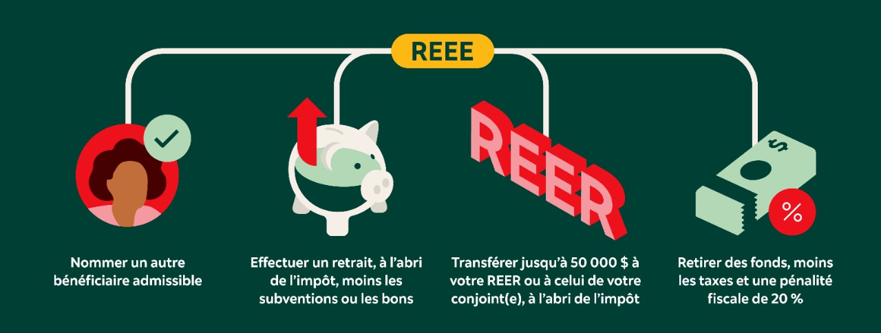 - L’impôt sur le REEE est reporté, mais pas supprimé. Votre enfant devra éventuellement payer de l’impôt sur les sommes retirées pour payer des droits de scolarité.
