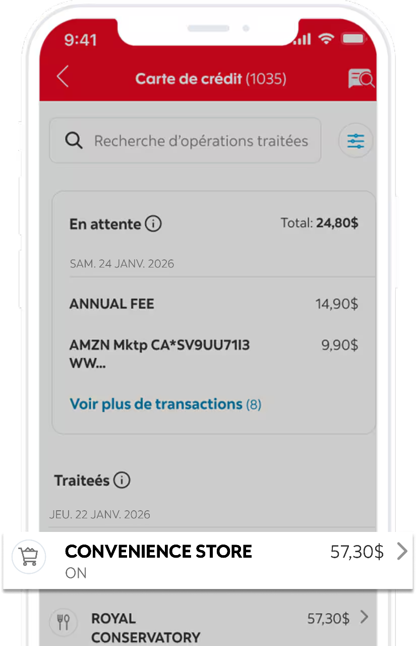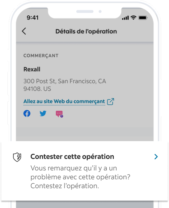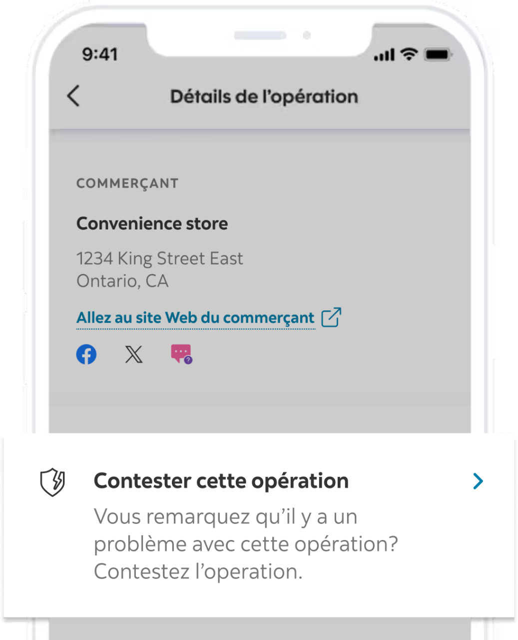 Si vous avez une carte de crédit Visa* de la Banque Scotia ou une carte d’accès Ligne de crédit ScotiaMD, ou si vous avez réglé un achat en ligne au moyen de votre carte de débit, vous pouvez contester une opération dans l’appli de la Banque Scotia.