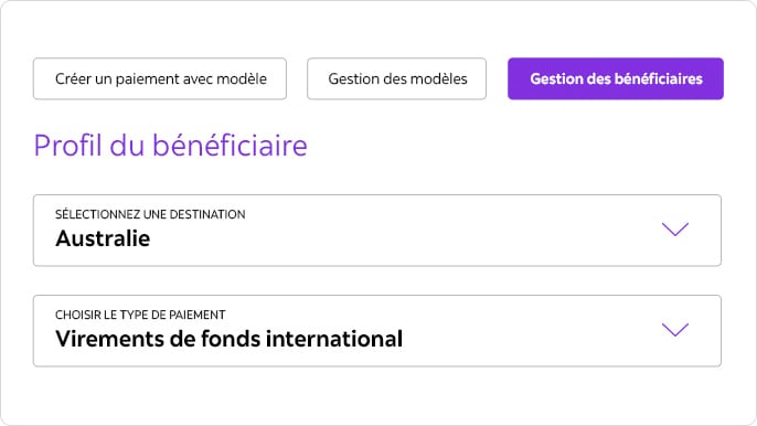 Créez un profil de bénéficiaire et sélectionnez le service VFI comme type de paiement.