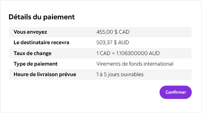 - Profitez de taux de change avantageux en temps réel.