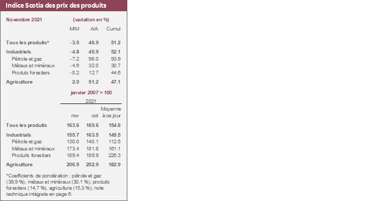 - Il s’agit du dernier article des Indices des prix des produits de base de la Banque Scotia; à partir de janvier 2022, nous publierons un nouveau rapport mensuel sur l’évolution des prix des produits de base.
