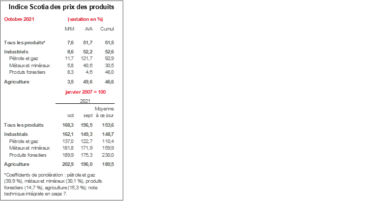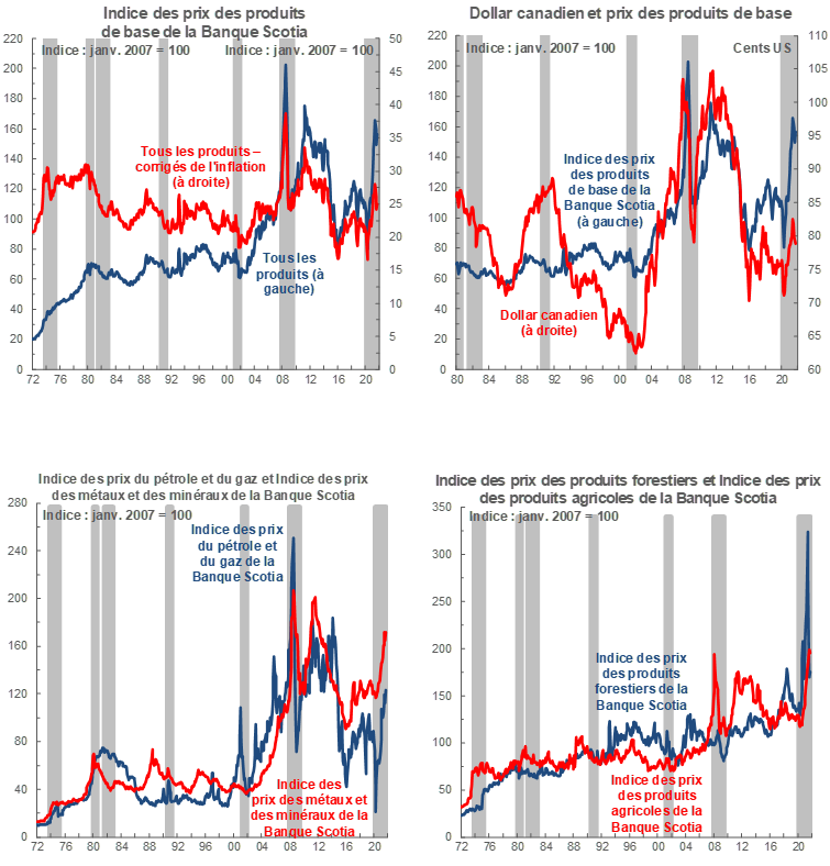 - Nous prévoyons de cesser de produire, en janvier 2022, les Indices des prix des produits de base de la Banque Scotia; nous continuerons toutefois de publier le rapport mensuel sur la conjoncture des cours des produits de base.