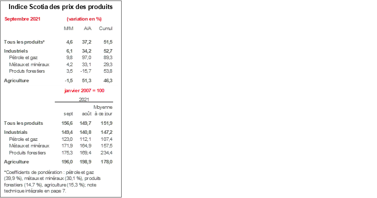 Indice Scotia des prix des produits de base – Principales exportations canadiennes