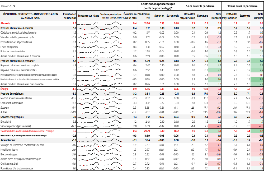 - États‑Unis : IPC//IPC de base, évolution en % sur un mois, janvier, en chiffres désaisonnalisés :