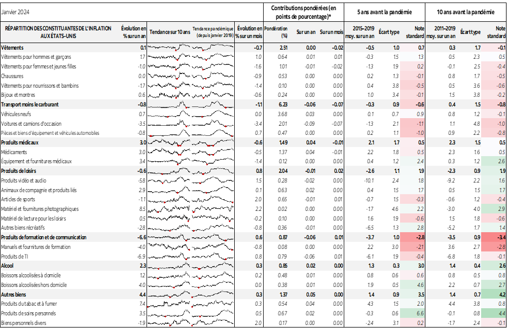 Veuillez également consulter le tableau détaillé de la fin, qui fait la répartition du panier, de même que les micrographiques et les baromètres de la note z des écarts par rapport aux récentes tendances par constituante.