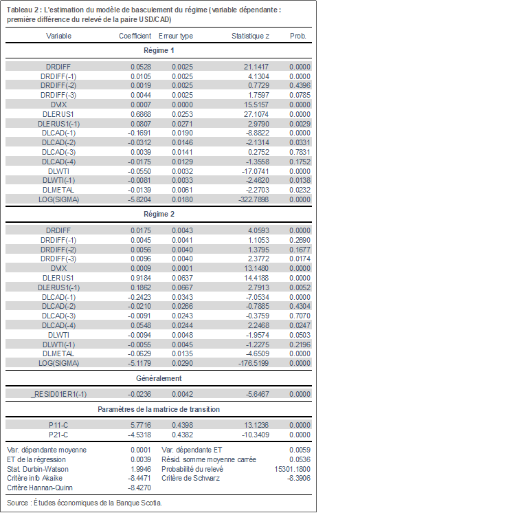 APPENDICE 2 : LE MODÈLE DE BASCULEMENT DU RÉGIME DE LA PAIRE USD/CAD