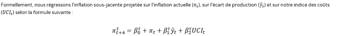 Reprenons notre question originelle : qu’en est-il pour l’inflation et pour les décisions monétaires de la BdC? Nous allons nous pencher sur cette question d’après deux angles : 1) sa capacité à expliquer la dynamique de l’inflation; et 2) son rôle dans le modelage des risques inflationnistes.