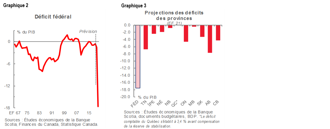 Or, la composition est importante alors que le gouvernement monte son prochain budget. Les mesures qui haussent le potentiel de croissance à moyen terme pourraient augmenter sa marge de manœuvre budgétaire, tout en fortifiant l’attrait d’un programme d’achat local au Canada. Or, le discours du Trône n’exprime pas d’ambition véritable sur ce front et ne propose guère de mesures permettant de vaincre certains obstacles insurmontables au Canada, par exemple le plongeon de la productivité (alors qu’on ne peut pas relancer la croissance grâce à la fiscalité). Par contre, les mesures qui créent des impératifs de financement permanent sans compensation en recettes pourraient soulever des inquiétudes à propos de la viabilité à long terme ou faire baisser la demande en prévision d’une consolidation budgétaire ambitieuse. Une partie de cette marge de manœuvre pourrait quand même être nécessaire si la deuxième vague n’est pas gérée ou qu’un vaccin prend plus de temps que prévu.