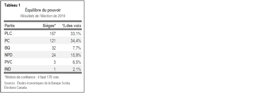La situation pourrait toutefois changer dans les jours qui précéderont le prochain budget, à plus forte raison si les signes des dépenses se multiplient par rapport aux messages ternis sur l’austérité. Il ne s’agit pas de notre prévision de base; toutefois, le contexte d’un gouvernement minoritaire comporte une part d’incertitude budgétaire, alors que l’équilibre du pouvoir penche en faveur d’un relèvement des dépenses. Quoi qu’il en soit, les marchés pourraient se positionner prudemment pour un risque électoral post-budgétaire, à plus forte raison si les autres élections au pays et à l’étranger confirment qu’un regain de popularité pandémique est universel. Par contre, la capacité du Canada à gérer efficacement une deuxième vague de la pandémie en évitant le tumulte électoral pourrait suffire à lui donner une longueur d’avance relative.