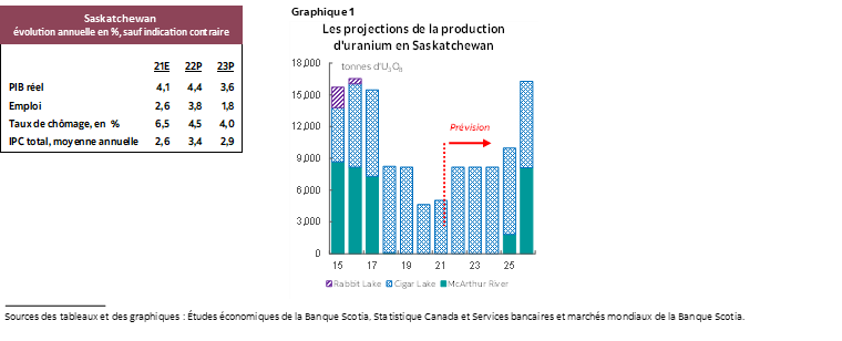 La première étape de la construction de la mine de potasse de Jansen devrait renchérir généreusement l’investissement dans les infrastructures sur l’horizon prévisionnel, ce qui placerait la Saskatchewan parmi les provinces les plus performantes cette année. On s’attend à ce que la construction dure six ans et coûte au total 7,5 G$; la mine devrait commencer à produire son premier minerai en 2027. En l’absence d’un calendrier de construction, nous avons supposé que les dépenses d’investissement sont assez également réparties sur le délai de six ans, malgré certains retards accusés cette année à cause du variant Omicron.