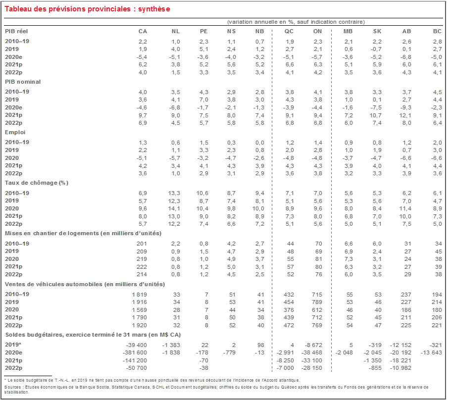 Les difficultés budgétaires perdurent. Les perspectives de croissance prépandémiques étaient limitées par l’incertitude des prévisions pour le secteur pétrogazier, ainsi que par le vieillissement et le fléchissement de la population; il aurait été difficile d’alléger le fardeau de la dette nette de cette province, qui est le plus élevé au pays, et de revenir finalement à l’équilibre budgétaire. Nous sommes encouragés par l’aide fédérale de 320 millions de dollars consacrée à l’industrie de l’énergie en mer et par les grandes lignes d’un pacte avec Ottawa pour l’aide dans les paiements se rapportant à la dette du chantier d’hydroélectricité de Muskrat Falls. À moyen terme, il sera crucial que le gouvernement provincial relance prudemment les courants d’immigration — ce qui représente le seul facteur toujours aussi positif pour sa population dans les dernières années.