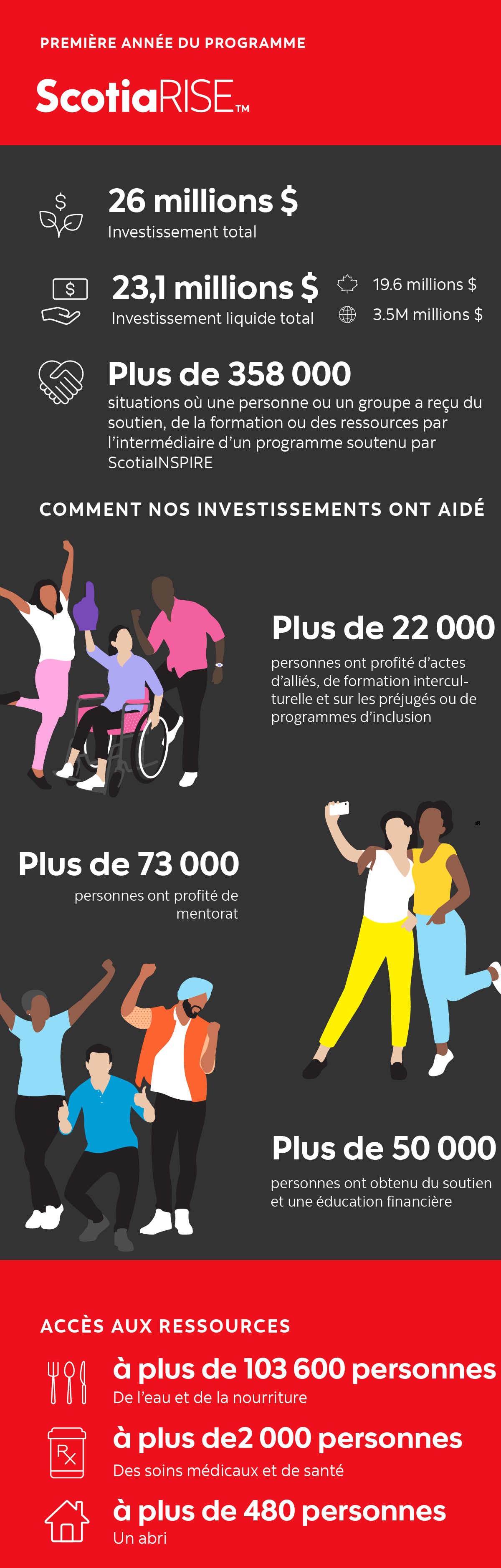 Dès sa première année, le programme ScotiaINSPIRE, dans le cadre duquel la Banque Scotia s’est engagée à investir 500 millions de dollars sur dix ans pour soutenir la résilience économique des groupes défavorisés, a permis d’obtenir des résultats à un moment où cette aide était bienvenue.