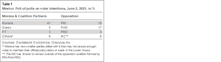 On Sunday, June 6, Mexico will hold mid-term elections, where among many other public positions, electors will vote for 15 of the country’s 32 governors, as well as all 500 members (300 through direct regional representation and 200 via proportional lists) of the Chamber of Deputies, the Lower House of Congress. Our May 3 guide to the elections and their possible economic implications laid out the key policy issues that could be up for consideration in the second half of Pres. López Obrador’s six-year term.