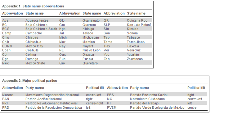 - At the state level, Morena is expected to become a more dominant political force by taking about half the governorships up for grabs.