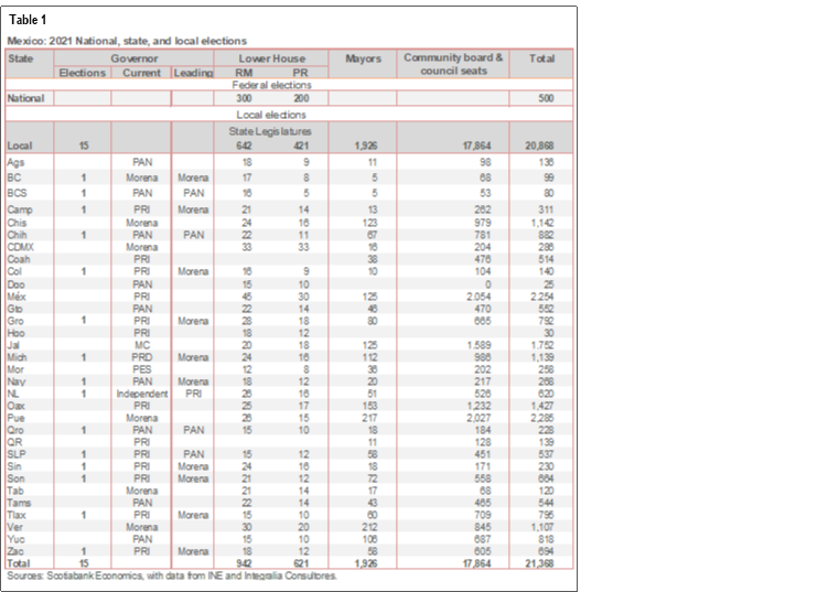 - The upcoming mid-term elections on June 6 will be critically important for the future of several important initiatives launched by the López Obrador administration, including reforms to the fiscal framework, electricity sector, and pensions.