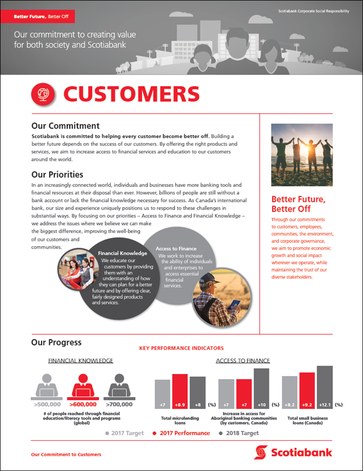 From individuals to small businesses to large corporations, our customers' success provides the foundation for our Bank. By providing relevant products and services, working to enhance financial knowledge and helping customers prepare for the future, we aim to increase our customers’ ability to become better off.