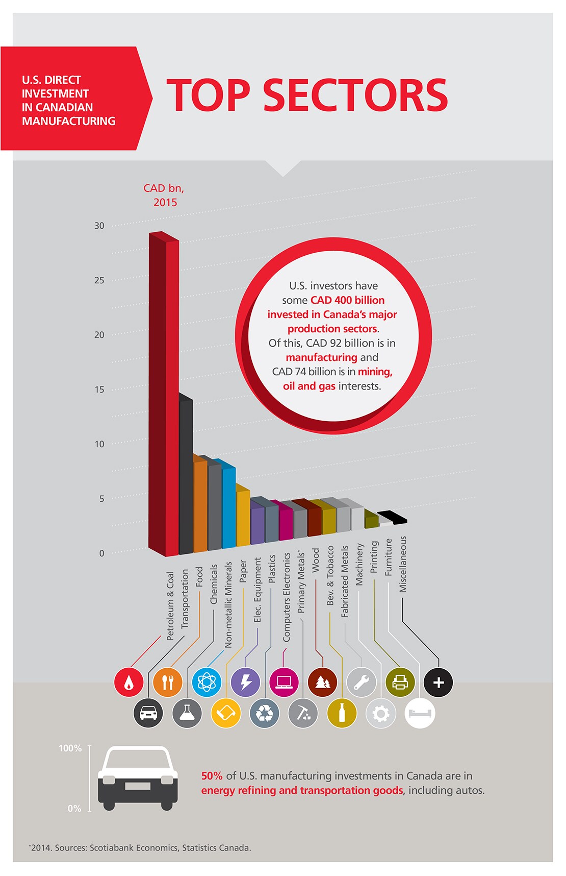 U.S. investment in Canadian exports is vulnerable too. U.S. foreign investors with substantial holdings in Canada’s major export sectors could provide a constituency in the States that may lobby to prevent disruption to Canada-U.S. trade, as disruptions could significantly impact their businesses.