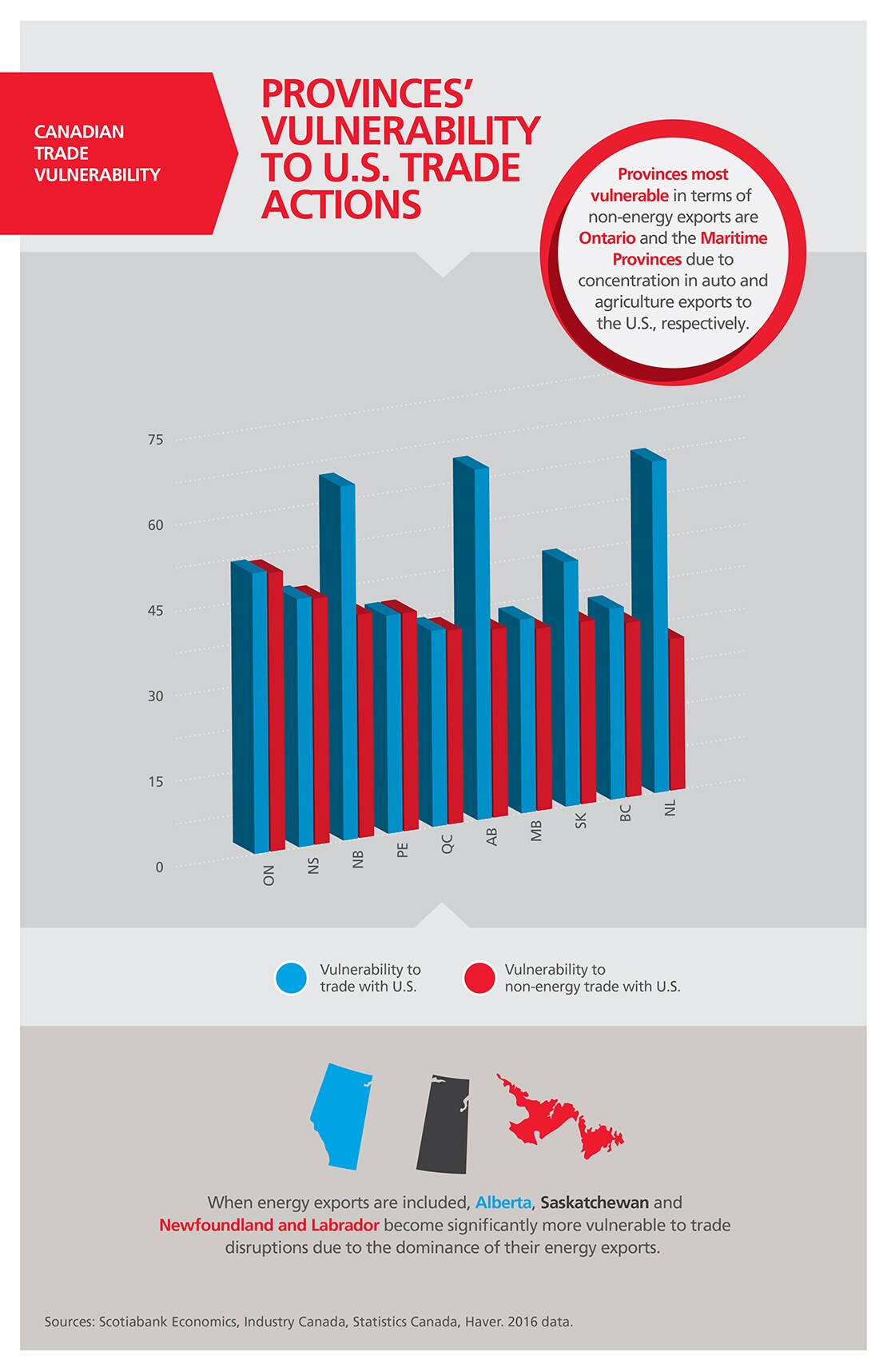 U.S. states are generally less vulnerable to changes in U.S. trade policy than Canadian provinces and Mexican states, but there would be significant impact on border states if NAFTA were torn up.