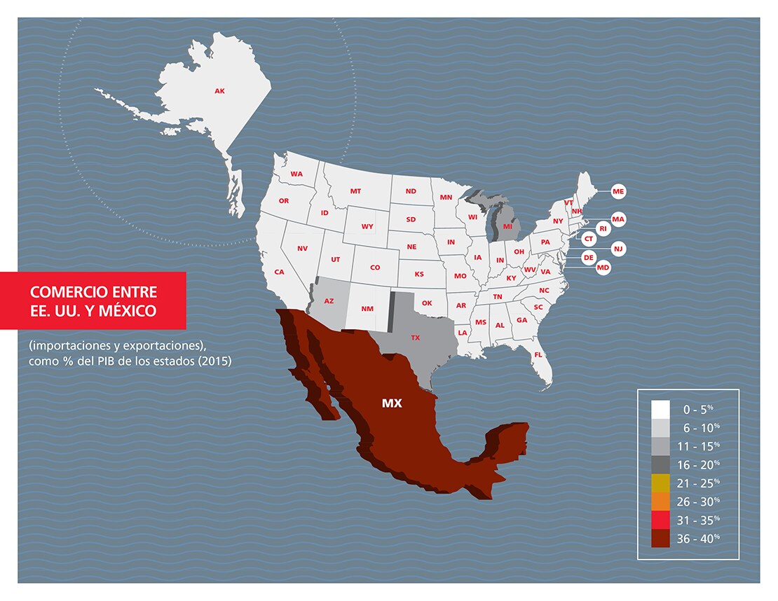 En general, los estados de Estados Unidos son menos vulnerables ante los cambios de la política comercial estadounidense que las provincias canadienses y los estados mexicanos, pero los estados fronterizos se verían muy afectados si se disolviera el TLCAN.