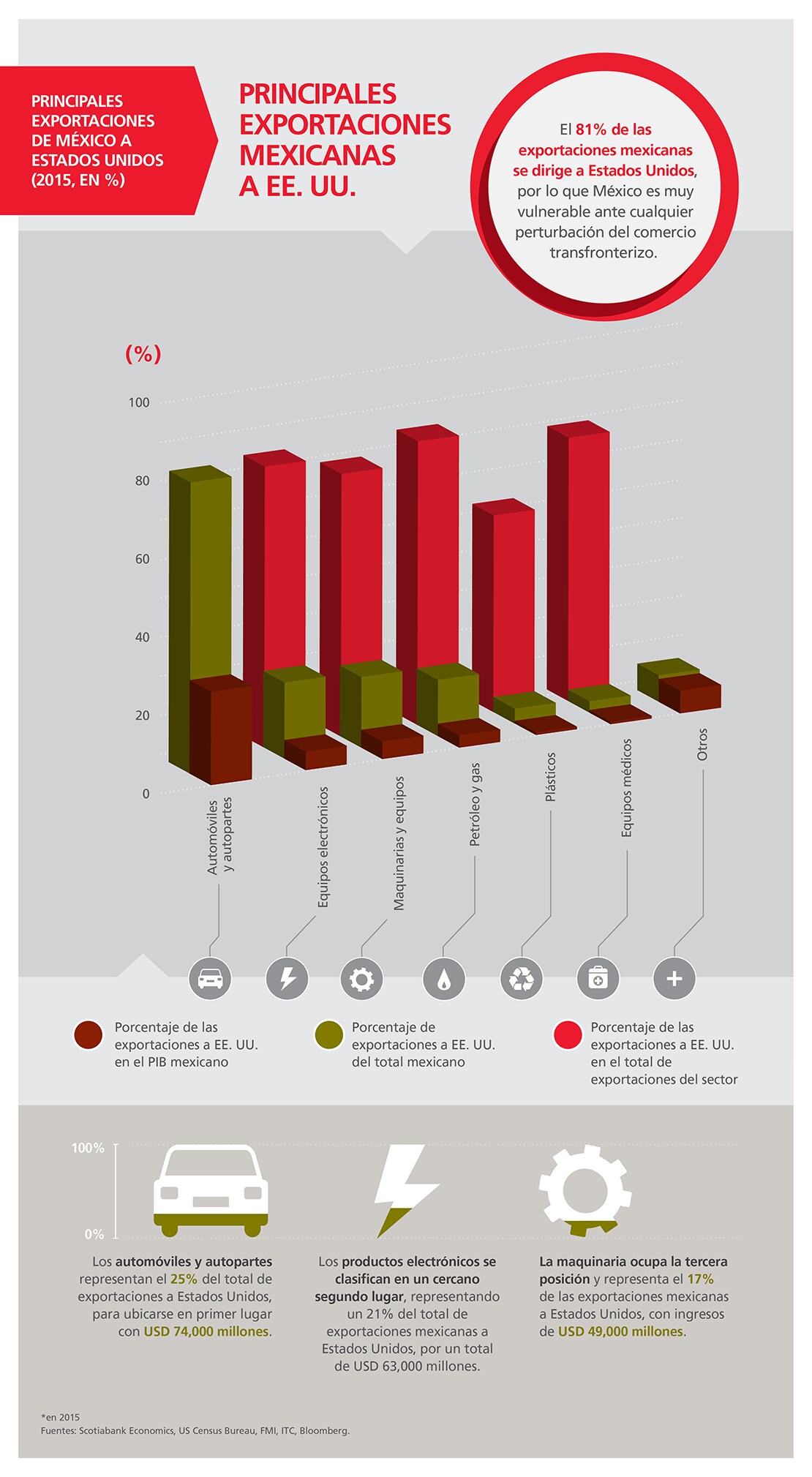 El comercio de México con Estados Unidos sufriría también un impacto similar al de Canadá, pues México es el tercer proveedor en importancia de bienes para Estados Unidos.
