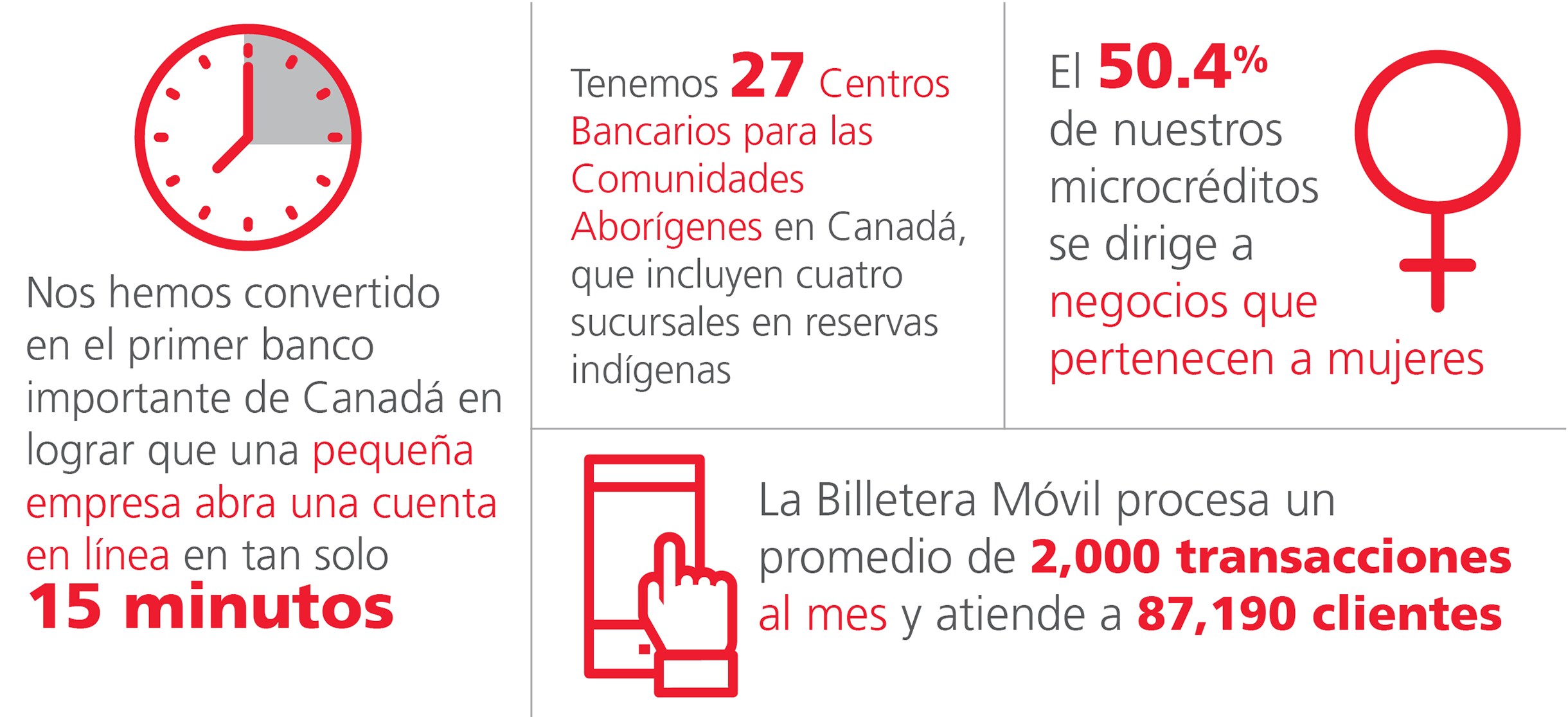 Las siguientes estadísticas destacan nuestros esfuerzos de aumentar la capacidad de las personas y las empresas de tener acceso esencial a los servicios financieros.