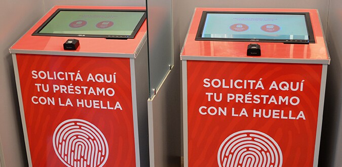 Los quioscos de autoservicio se introdujeron en enero de 2017 y, hoy en día, todas las sucursales de Uruguay cuentan con uno. Los quioscos utilizan tecnología de reconocimiento biométrico para verificar de manera segura la identidad de los clientes, quienes a través de una pantalla táctil introducen su número de identidad nacional y confirman su información básica antes de solicitar el préstamo. Una vez que se le aprueba, el cliente lo obtiene con el cajero del Banco a los pocos minutos.