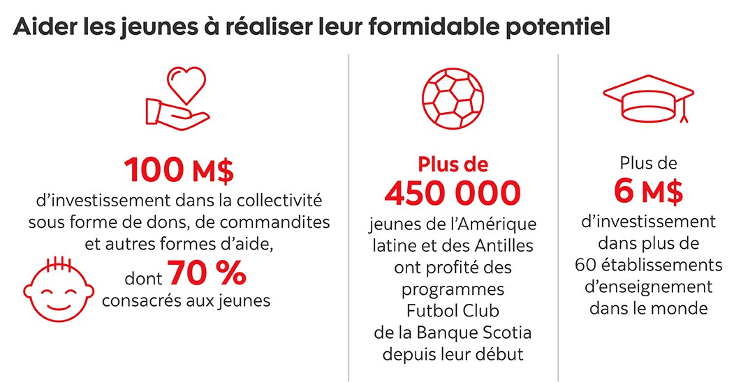 L'initiative ScotiaINSPIRE investira dans trois champs d'action prioritaires dans les pays où la Banque Scotia exerce ses activités :
